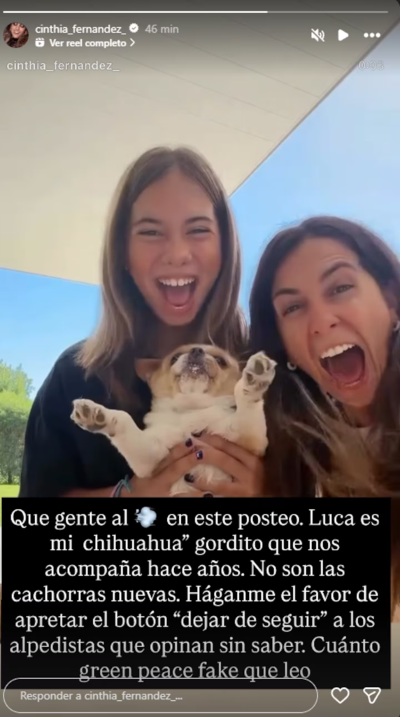“Gente al pedo en este posteo. Luca es mi chihuahua gordito que nos acompaña hace años. No son las cachorras nuevas”, aclaró Cinthia.